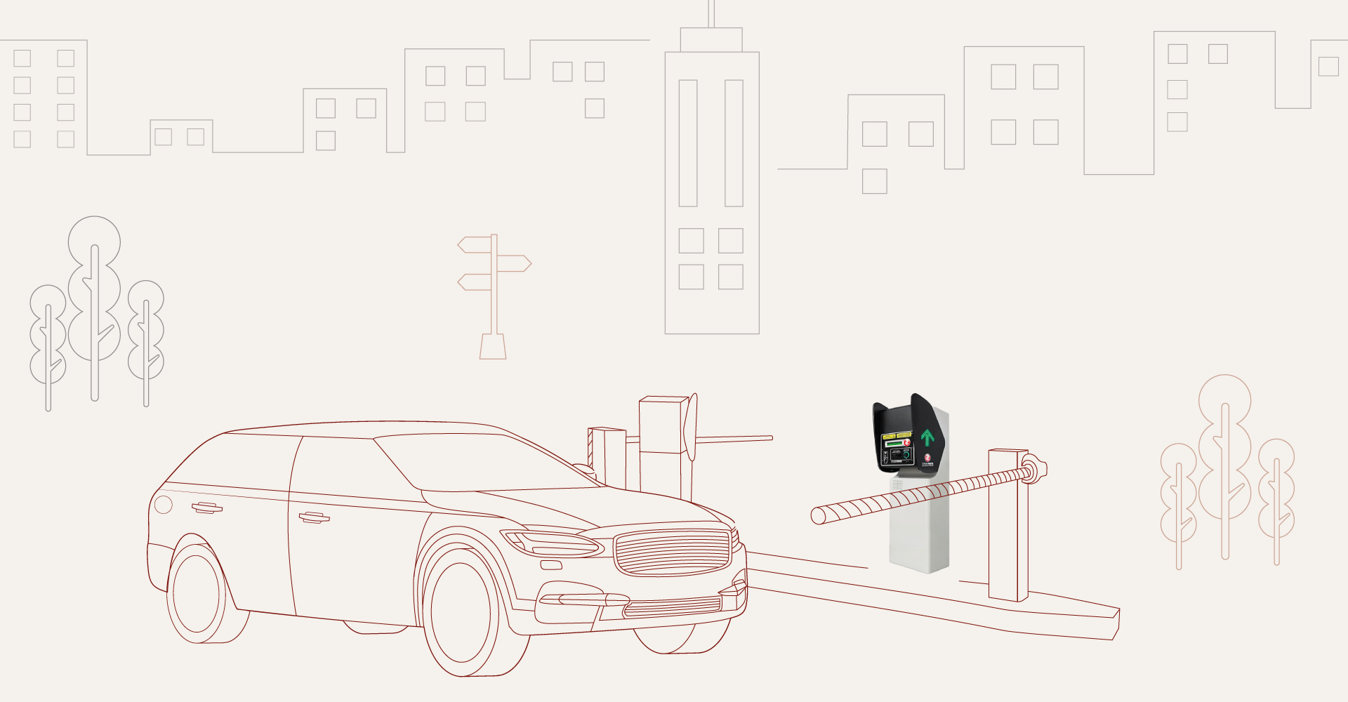 Cancela com barreira em alumínio e borracha de proteção e gabinete em aço galvanizado e pintura epoxi.